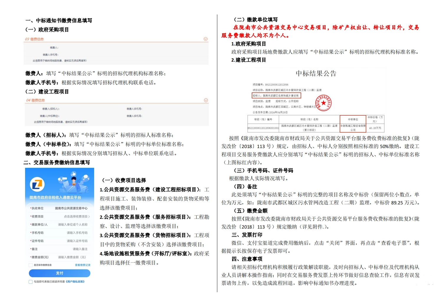 隴南市公共資源交易中心交易服務(wù)費(fèi)自助繳納操作指南
