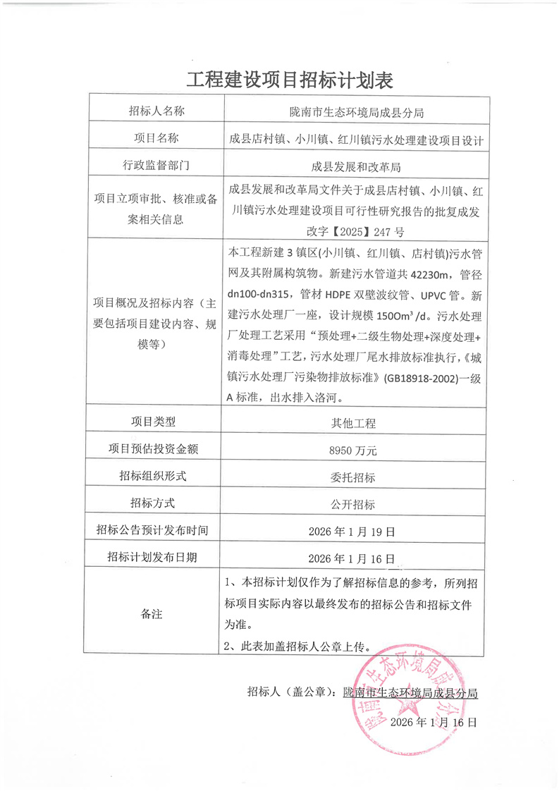 成縣店村鎮(zhèn)、小川鎮(zhèn)、紅川鎮(zhèn)污水處理建設(shè)項目設(shè)計